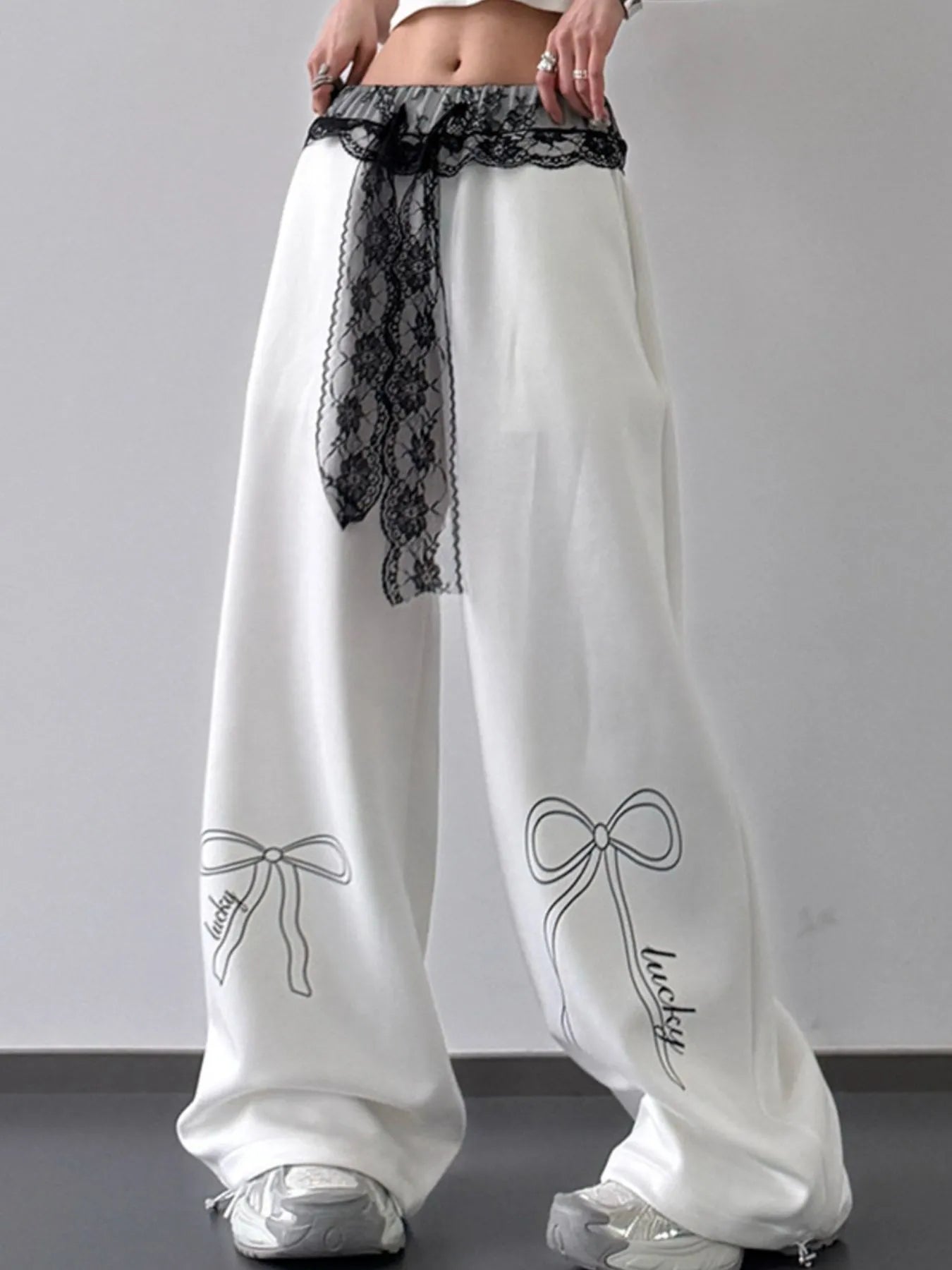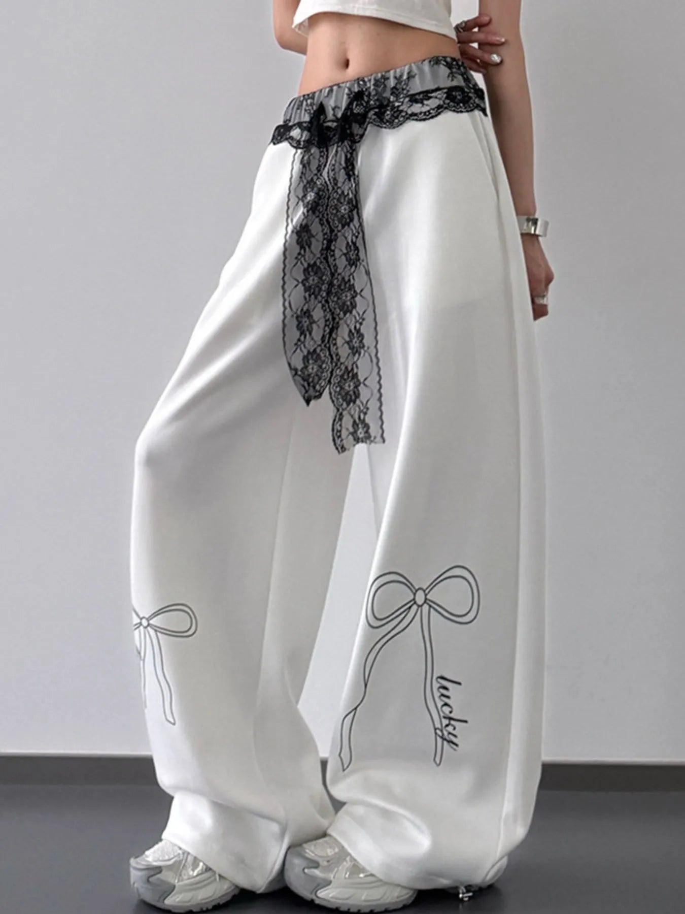 Wide Leg Pants with Lace Belt Detail